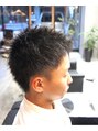 サイドは刈り上げたツーブロックスタイル。全体的にベリーショートでビジネスマンにも学生にもおすすめのスタイル!