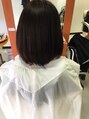 地毛は落ち着いたブラウン系のボブベースのスタイルでいらっしゃいます。お客様の地毛のお色に合わせて当店でも人気のB1(暗いこげ茶色)を超音波で80本お取り付けいたしました。仕上げになじませcutを施しました。