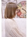 【かわいい!】と思ったらブックマークお願いします!厚めの前髪にワンカールのボブがキュートなスタイルです!カラーはブリーチ後、うすくグレージュをかぶせて、くすみ感のあるブロンドに。model:岡元優香