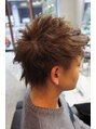 サイドは刈り上げてツーブロックに。あとはある程度長さを残して、パーマで全体に動きfがでやすい感じにあてました。色は10レベルのアッシュで明るめですが、落ち着いた雰囲気にしています。好感度UPのスタイルです!人気のウェットショートスタイル。