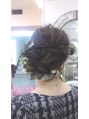 ねじり、ツイスト、波ウェーブを織り交ぜたサイドシニヨン。多毛さん、クセ毛さんにもおすすめのアレンジです。崩れにくく長時間の外出時に向いています。