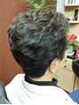 バングはボリュームを出しながら流すのを意識。トップ、クラウンにはボリュームを耳周り、ネープは毛先のおさまりを意識してパーマを。カラーは暗めのベージュ系で落ち着いた印象に。レディースシェーブとエステで頭も気分もリフレッシュ!!