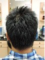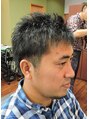 サイドは短くして耳にかからない長さでかぶせる。短い部分見せてさりげないおしゃれ感をアピール。毛の流れを活かして自然に流れやすいようにカット。整髪料をつけて毛束がでるように量も調整する。ネープはサイドと自然に馴染む長さに。