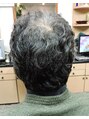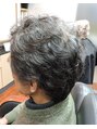全体に強めのウェーブをかけてボリュームをだす。そのウェーブに合わせてはねないように長さを調整。全体のボリューム感を意識したパーマスタイル。