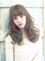 大きなウェーブに動きをつけて!!重めバングにトップの軽さ&外ハネなどの動きも今季はオススメ♪ツヤと少しのラフ感を楽しめるロングスタイル☆
