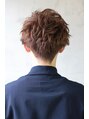 サイドとバックを刈り上げた、ツーブロックのマッシュスタイル。ハイトーンのブルーアッシュカラーで軽さと、爽やかさを演出しました。