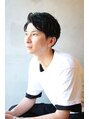 七三のオールバックスタイルです。サイドをツーブロックにしてすっきりした印象にしてあります。直毛の人は、ゆるめのパーマをかけると流しやすくなります。