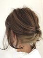 インナーデザインカラーのアレンンジスタイル!襟足と、サイド、バングにガっツリとふんだんハイライトを入れ、アレンジしたときに見える、オリジナルデザインカラースタイル!