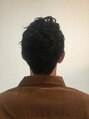 ツーブロックベースに全体を主張しすぎない強さのウェーブでナチュラルパーマスタイルの完成。直毛/軟毛でセットしずらい方やON/OFFの使い分けからビジネスマンの方にオススメのスタイルです。