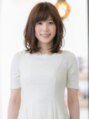 似合わせ小顔カット。肩についてハネるのが嫌な人にもオススメ♪鎖骨レングスのローレイヤベース。中間~毛先にかけて質感調節し、前髪は斜めに小顔カット。MIXパーマで巻きすぎずに柔らかさを引き出します!カラーはプラチナブラウンで透明感を。