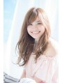 フェイスラインと毛先にレイヤーを入れ、斜めバングで小顔に。伸ばしたい前髪を優しく包むように斜めにすることで大人かわいいスタイルになります。トリートメントでさらにツヤを出すことで柔らかな雰囲気になります。