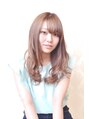 大きめに出したウェーブと、目上ぎりぎりでカットして斜めに流した重めバングが大人かわいいポイントです。