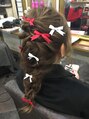 編みおろしスタイル!赤白のリボンでガーリー感をアップ☆