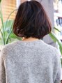 定番のボブスタイルにちょっと長めに設定した長さで、あえてロートーンで仕上げて、こなれ女子の雰囲気を演出しました。 アウトライもあえて切りっぱなしの重さとランダムに入れた軽さが動いてくれます。いつもと違う雰囲気出したい方にオススメ。