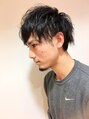 サイドとバックは2ブロックですっきりと。ランダムに巻いたパーマで外国人風の柔らかい質感に。普段のスタイリングも簡単に出来ます。