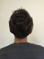 ツーブロックを高めの位置に設定、フロントからトップにかけ長さを残した柔らかめのパーマスタイル。清涼感と個性を楽しめON/OFFの切り替えたスタイルからアレンジしだいでナチュラルからクラシックなスタイルにも出来ます。