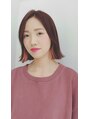 肩につくかつかないかくらいのワンレンボブ。毛先に角を残して外はねにスタイリング。甘すぎず少しモードな印象です。カラーで遊びを!