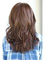 セミロングスタイルです。ラフな動きが出やすいスタイルです。デジタルパーマをバイアスのスライスで前頭フォワードリバースと交互に巻いてつくっています。カラーは9トーンのマットアッシュカラーで束感と透明感を強調した色味となっています。