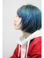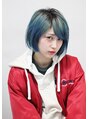 抜け具合の違うブリーチの髪にブルーをオン!!!グリーンからブルーへのグラデーションに!!根元をあけてモード感全開に☆カットもライン感のあるボブに!!