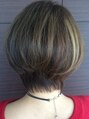 トップに長さを残し、えり足をコンパクトにすっきりとくびすじに馴染ませ。バックにボリューム感のある大人ショートに。丸みのあるシルエットが頭の形をきれいに見せて、アゴのラインをシャープに見せます。幅広いファション、世代に対応できるショートです。