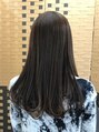 カットは重さのある、ロ-レイヤ-スタイル。カラーはツヤや柔らかさのあるエメラルドグリーンに仕上げました。