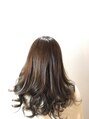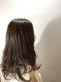 いつも同じ色で何か変化を出したい。耳から下にメッシュを入れています。コテ仕上げした時に動きが出ます。
