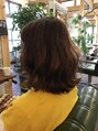 切りっぱなしのボブを波ウェーブで仕上げました。黒染め後でも染料だけをとってくれる脱染剤を使ったダブルカラーならダメージも少なくナチュラルなカラーに仕上がります。
