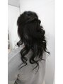 お出かけ前のプチアップカールアイロンでランダムに巻いて両サイドは後ろでねじりました。