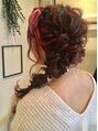 全体をウェーブ巻きにし、サイドに流したアレンジです。両サイドにツイストが入っていて華やかでカジュアルな可愛いアレンジです♪どこからみてもバランスよく華やかです♪