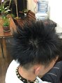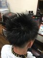 内側をバリカンで3ミリに刈り上げたのち、トップを出来るだけすきバサミを使わず根元からランダムにトリミング。仕上げはクレイワックスでドライな質感に仕上げました。