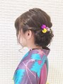 着物に合わせた派手すぎないアレンジです。人と被らないアレンジをご提案します。