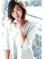 流れるような前髪とひし形シルエットが魅力のレイヤーボブ。カラーは透明感の出るアッシュベージュ。
