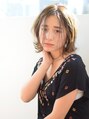 ラフに揺れるルーズなボブ。前上がりボブをベースに顔まわりとトップにレイヤーを入れて。髪が柔らかく動くようにドライカットで質感を調整。オリーブベージュカラーで、光に透ける質感をプラスします。フェミニンな抜け感のボブスタイルです。