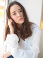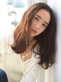 髪が柔らかく揺れるロングパーマスタイル。Aラインをベースに毛先全体にローレイヤーを入れ、顔まわりの髪が動きやすいようにドライカットで質感を調整。大きめロッドでデジタルパーマをオン。ナチュラルなミルクティーブラウンで女性らしさをプラスします。