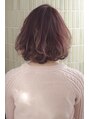 ベースはまとまりやすい重ためのワンレングスボブスタイル。表面は段を入れ、巻いたときにふんわり動きがでるように。カラーは赤系のグラデーションカラー。明るしたいけど全体ブリーチはちょっと…という方にはグラデーションカラーはオススメです。