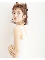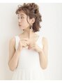 髪全体にカールをつけサイド、バックにルーズに編み込みを作ります。バックの低い位置で髪をまとめバランスを見ながらスタイリング★