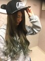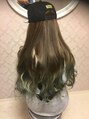 毛先をグラデーションカラー。青系アッシュとゴールドベージュをミックス