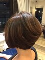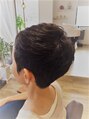 フロントは長めにグラデ-ションでカット、バックは厚めに刈ったメリハリのついたスタイルム-スを揉みこむだけで束感しかりのゆるパ-マでキメすぎない、作り込みすぎない無造作感がポイント