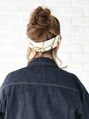 ターバンを使ったアレンジ。全体をゆるく巻く。あらかじめサイドの毛は残してトップの毛はお団子にして表面を引き出す。ターバンを沿わせて完成。【EARTH上本町店】