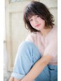 頬にかかるカールがやわらかな印象を醸すフェミニンボブ。高めの位置からパーマをかけることで、軽くてエアリーなゆるふわ感を演出。少し短めの斜めバングでカジュアルダウンして、ガーリーな妹系の愛され顔に☆