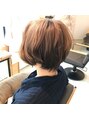 前髪なしの前下がりショートです( ^_^)/~~~マニッシュなファッションと相性抜群ですよカラーは明るめのブルー系アッシュです