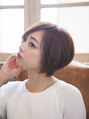 乾かすだけでもかわいいカジュアルボブ。どこから見ても綺麗な丸さとメリハリのあるシャープ感がでるようにカット。動きと軽さがでるように間引きながらカットすることで手ぐしで毛が動くように☆前髮は長めのサイドパートでスレンダーな効果アップ☆