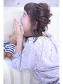 ベースは鎖骨下の長さのレングスで、左右半分に割って トップから5回くるりんぱをしながら下りていく。最後にほぐせば出来上がり♪