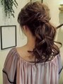 少し高めのツイストポニーです☆大人っぽく、ナチュラルな可愛いヘアスタイルで好印象です(o^^o)お呼ばれ、女子会や普段ようにピッタリです(^ ^)首元がきれいに見えて抜け感のあるアレンジです♪