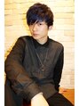 ハイトーンのカラーに6レベルのブルーアッシュを入れて毛先に向けてブルーのグラデーションにしました。カットは今らしくマッシュベースの丸みのあるスタイルで!