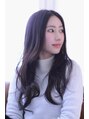 髪色を明るくできない方でも重たく見えずに透明感のあるアッシュ系カラーでニュアンスの巻き髪。パープルを加えたウォームアッシュでひと味違う仕上がりに◎