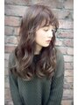 重めのスタイルでも軽く表面にレイヤーを入れて動きを出しやすくし、緩めに巻き、前髪は毛先を軽めにし、トップから強めにカールを出して☆カラーはベージュで柔らかな質感に仕上げました