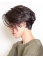 顎のラインからの延長上に高い位置で丸みを作った前下がりなシルエットに目線がいくマニッシュなショートボブ。360度どこから見ても綺麗にみえます。トレンドのセミウェットな質感との相性がとても良いです。