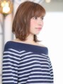 似合わせ小顔カット。肩についてハネるのが嫌な人にもオススメ♪鎖骨レングスのローレイヤベース。中間~毛先にかけて質感調節し、前髪は斜めに小顔カット。MIXパーマで巻きすぎずに柔らかさを引き出します!カラーはプラチナブラウンで透明感を。