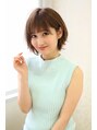 耳掛けした時の前髪サイドをラウンドにきる事で小顔効果がバツグン!ミントのトップスとベージュカラーの相性は抜群♪